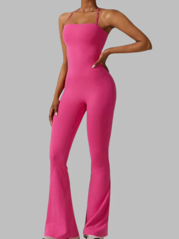 Upgrade your look with this versatile one-piece jumpsuit, crafted from soft, stretchy nylon-spandex for a second-skin feel. The backless halter neckline shows off your shoulders, while the sleek, fitted legs create a flattering silhouette.