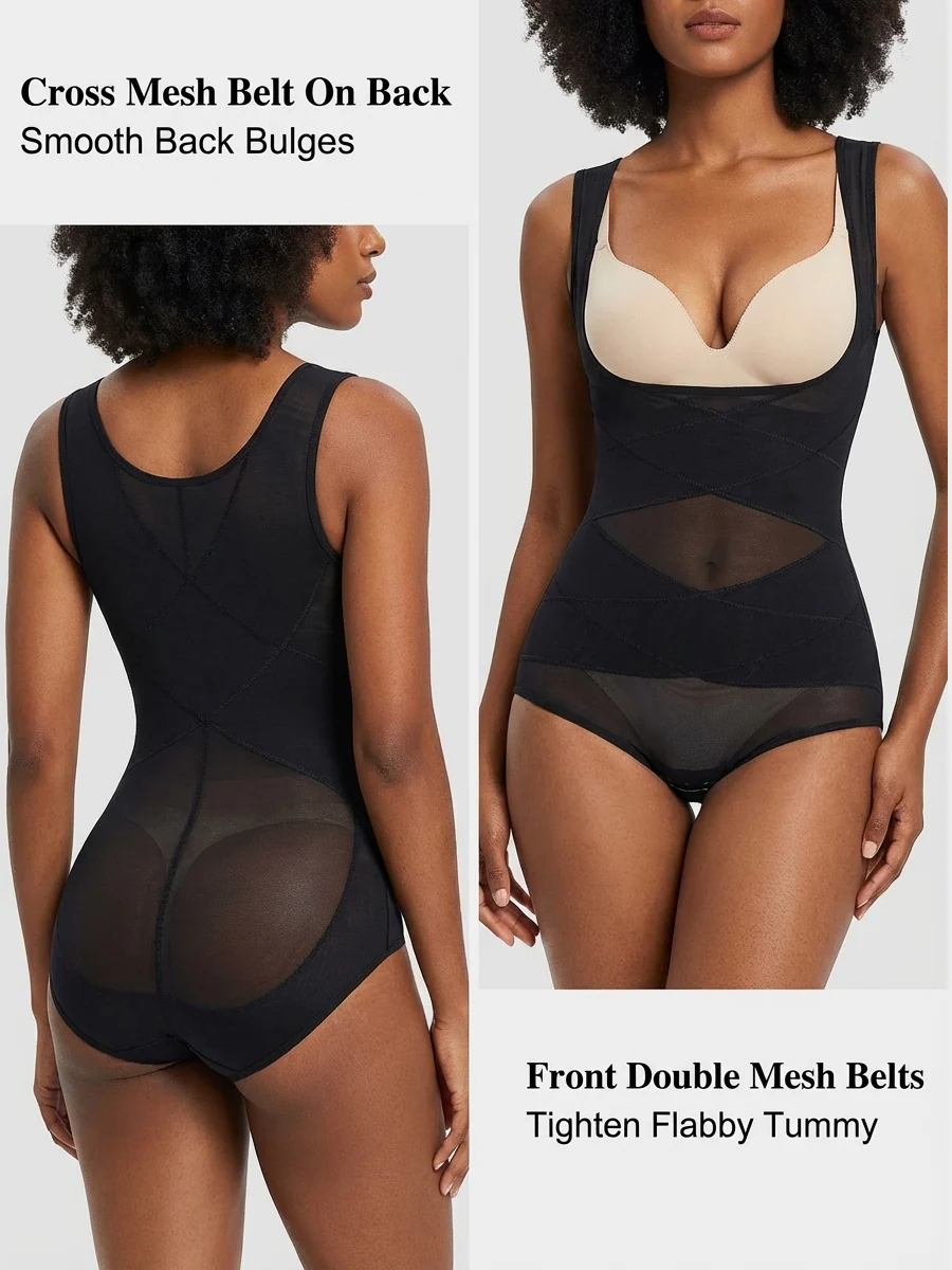 【U-SHAPE PUSH UP BREAST BODYSUIT】Our open bust bodysuit helps push up and brings your breasts to center, give you a beautiful chest. This underbust corset allows you wear your favourite bra, and hides perfectly under all kinds of clothes, even for low-cut blouse, dress. This women sleeveless bodysuit tops has 2 elastic wide straps which help relieve shoulders pressure, leave NO over-squeezing marks, give you comfortable snug fit.